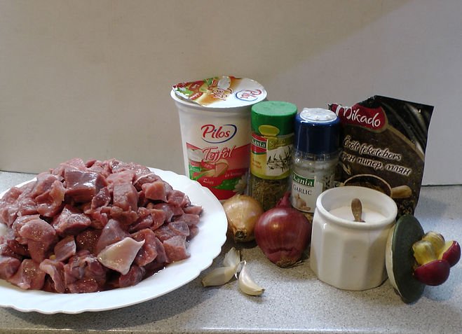 A hagymát és a fokhagymát apróra vágjuk és egy kis olajon üvegesre pirítjuk. Ezután hozzáadjuk a felkockázott húst, amit ízlés szerint sózunk és borsozunk. Miután a hús megsült, pirítunk rajta picit, ezután felöntjük egy kevés vízzel (kb. a negyedéig lepje el). Hozzáadjuk ízlés szerint a fűszereket és a citromlevet, majd jól elkeverjük. Miután elforrt róla a víz, hozzáadjuk a tejfölt, hagyjuk, hogy újra felforrjon, így az ízek összeérnek, és a ragu el is készült. Rizzsel és párolt zöldségekkel tálaljuk.